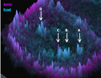 • 1. Nous déterminons une signature « Cadhérines » correspondant au profil d’expression des cadhérines en lien avec un invagramme (invasivité 3D des cellules tumorales, capacité à former des invadopodes,…). Le but de cette approche est de prédire l’agressivité du PDAC, permettant un suivi personnalisé des patients.