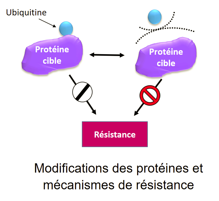 Les modifications post-traductionnelles de type ubiquitine (ubiquitine et protéines apparentées comme les SUMOs et Nedd8) régulent les fonctions de toutes les protéines cellulaires et sont donc impliquées dans la plupart des processus biologiques d'une cellule. Des altérations de ce type de MPT peuvent être impliquées dans des processus oncogéniques et être responsables de mécanismes de résistance permettant à la cellule cancéreuse de survivre aux divers traitements anti-cancéreux.